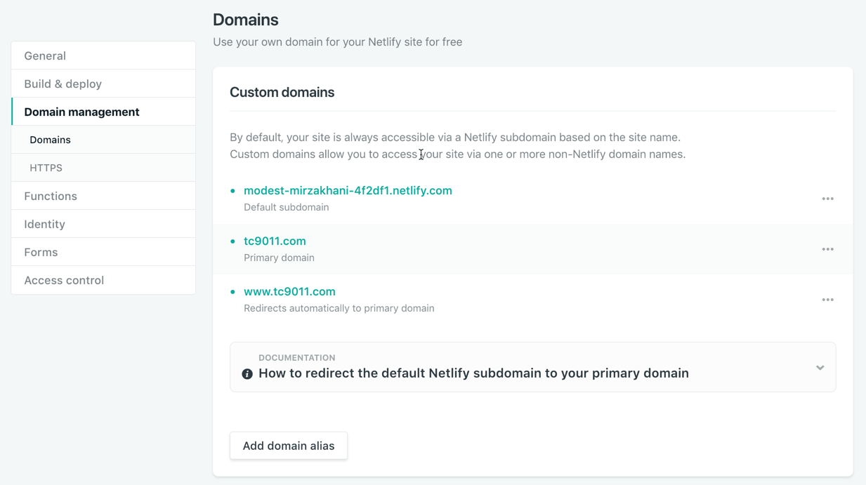 设置完,Netlify 会提示你去域名DNS解析处,修改域名的CNAME记录: